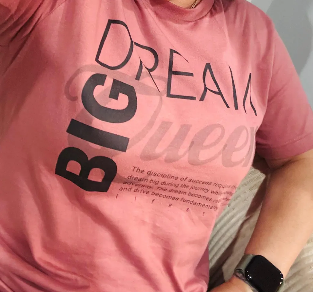 A soft, breathable tee that speaks quiet confidence. Lightweight Airlume cotton and a neat crew neckline make this shirt easy to layer or wear on its own. The front features typographic art—bold “BIG” stacked beside elegant script—balanced by a small circular logo at the upper back. Subtle side seams and shoulder tape keep the silhouette looking sharp, while the tear-away label keeps comfort irritation-free. Wear it when you want a minimalist statement that reads thoughtful, ambitious, and calm.